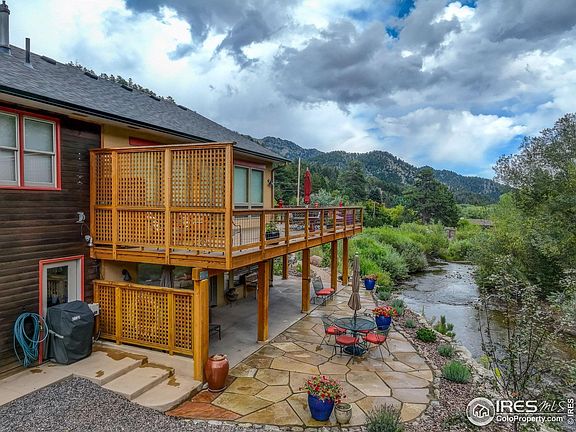 Light-Filled Riverfront Retreat with Cascading Waterfalls. A once-in-a-lifetime opportunity to own a riverfront sanctuary in the storybook town of Jamestown, just ten miles from Boulder yet worlds away. Nestled on the banks of James Creek, this extraordinary residence is enveloped by cascading waterfalls, creating a constant symphony of rushing water and mountain air perfumed with pine. The floor plan is both dynamic and versatile: a secluded primary suite crowns the upper level. Two secondary bedrooms are spacious and bright, alongside a home office overlooking the river. The lower level unveils a private one-bedroom apartment with its own entrance-ideal for guests, income, or multi-generational living. Walls of glass in both living spaces invite the outdoors in, framing hypnotic views of forest and falls from nearly every room. Architectural details-arched doorways, barn doors, warm wood, and tile floors-infuse timeless character. French doors open to a wraparound deck that seems to float above the water, the perfect stage for morning coffee or sunsets kissed by canyon light. From the expansive deck and stone patio overlooking the river to the wildlife that drifts quietly through, this is a retreat defined by seclusion and serenity. A newly poured concrete pad sits alongside the home, offering flexible use as extra parking, a future garage, carport, or outdoor entertaining area. Steps away, the legendary Merc offers live music and community spirit, seamlessly blending solitude with connection. This is more than a home. It is art, nature, and lifestyle in perfect harmony-an incomparable mountain escape that simply cannot be replicated.