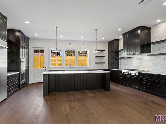 Many unique characteristics are defined throughout this home to compliment its modern charm. The main living area is complemented with 18’ ceilings, floor to ceiling windows, a gorgeous light-washed brick fireplace accented with an extra large lantern pendant fixture with a transitional open frame design to help illuminate a welcoming spirit eager to greet your company. Accompanying the main living area is a designated wet bar fitted with a white oak herringbone wine rack, KitchenAid ice maker and an at-bar sink, perfect for entertaining guests. The home’s luxurious chef’s kitchen features many amenities equipped to satisfy all of your needs when preparing an at-home meal, such as preparation space, storage, and top-notch KitchenAid stainless steel appliances, such as a commercial-grade refrigerator, 6-burner gas cooktop with griddle, and double oven. The space is emphasized with a captivating large quartz island with a built-in wine cooler and under-the-counter microwave for convenience. Displayed across the kitchen are numerous floating shelves as well as sizable cabinets that extend to the ceiling giving the space an organized flow. Find yourself enjoying the natural lighting in the formal dining area and indulging in the warmth of the wood burning fireplace guaranteed to give you that cozy at-home feeling. The master suite is sure to catch your eye, with the elegant look of the marble tile work to the double-vanity, modern light fixtures, and timeless freestanding soaker tub, keeping the space nice and inviting. Feeling chic? Get ready to enjoy this focal point in the master suite! The custom built-ins and large closet island is certain to give you that aesthetic appeal while while also offering functional storage space. . Enjoy your outdoor kitchen space accented with a grilling area and beautiful brickwork under the covered patio surrounded by privacy fencing. Be sure not to miss this beauty, schedule your showing today!