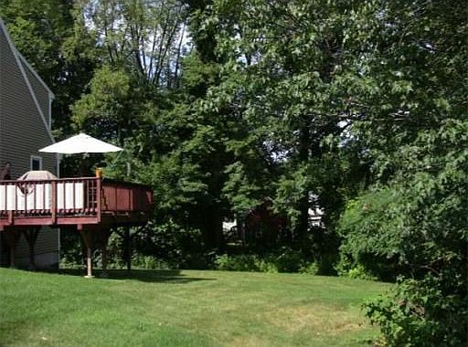 Mint condition end unit townhouse in desirable Merrimack Meadows. The 1st floor features hardwoods throughout, a large eat-in kitchen, full bath, 2 bedrooms, LR w/cathedral ceilings opening out to an over-sized wood deck all in a fantastic private location towards rear of complex and surrounded by woods on 2 sides. The 2nd floor boasts a master suite w/private bath. Bonus features include a large full basement, central air, new furnace & H2O heater. Excellent location nearby 495/93,