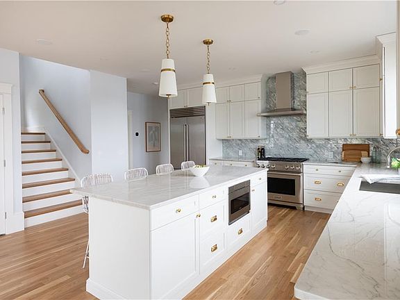 Brand new luxury home on Narrow River, constructed by award winning design-build firm Davitt Design Build. This 4 bedroom 3.5 bath is located steps from the water and its very own brand new 40' dock. This open concept home offers spectacular water views, and features a designer kitchen complete with a large center island and Wolf/Sub-zero appliances. The kitchen opens into a dining area, and living room with gas fireplace. The first floor also offers a primary suite, laundry room, half bath and an expansive deck overlooking the water. On the second floor you will find another en suite bedroom, two additional bedrooms and a full bathroom. This waterfront home is perfect for entertaining and is conveniently located near the beaches, shopping and restaurants South Kingstown and Narragansett have to offer.