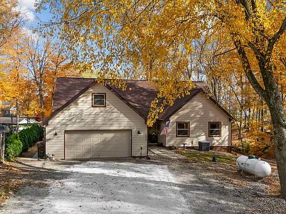 Waterfront Living at Its Finest on Heritage Lake! Fully remodeled in 2020, this stunning waterfront retreat offers the perfect blend of rustic charm and modern luxury. Situated on 0.89 acres with approximately 156 feet of water frontage, this home boasts incredible views and endless opportunities to relax, entertain, and enjoy lake life. Step inside to discover three spacious primary suites, including a convenient in-law quarters, providing flexibility for family and guests. The main living area features rustic beamed cathedral ceilings and panoramic water views from every window, creating a warm and inviting space to gather. You'll also love the butler's pantry, full home reverse osmosis system, and upgraded interior doors throughout. Upstairs, a loft overlooking the main living area leads to the third suite-complete with its own full bath and a huge walk-in closet. Plus, enjoy a 21.5' x 12' flex room above the garage, perfect for a home office, gym, or hobby space. Outside, you'll find a private dock, fishing shed, and plenty of room to soak in the views or entertain lakeside on your nearly one-acre lot. This is an absolute must-see! Waterfront homes like this don't come along often-call your favorite REALTOR today for a private showing before it's gone!