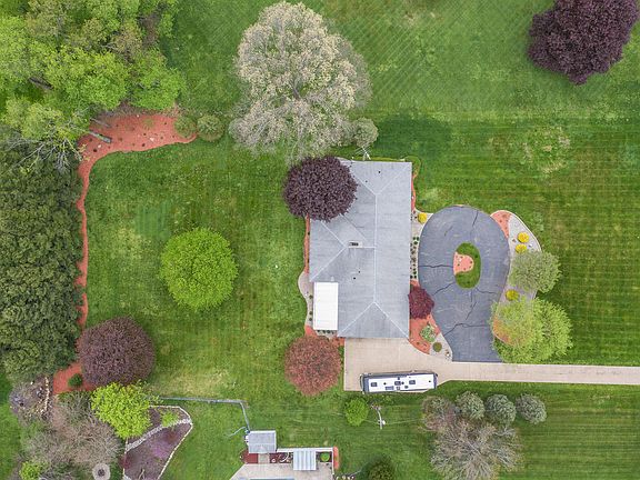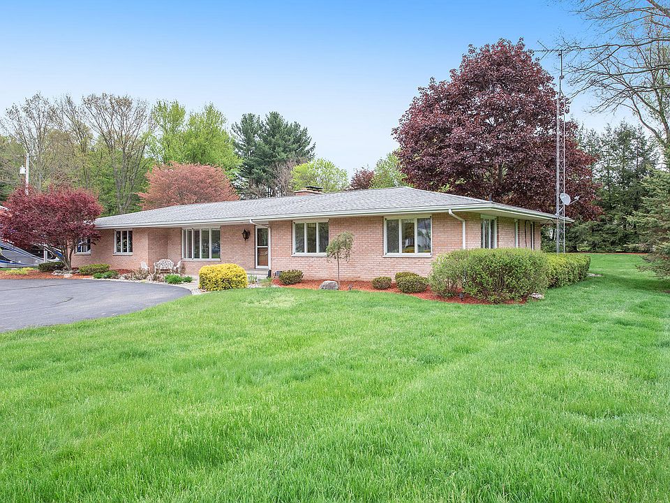 Stately brick ranch with an abundance of plants, shrubs, & trees for privacy and beauty. Including a spectacular tri-colored beech tree. Circular driveway for your guests, along with a driveway to the oversized 2 to 3 car garage with storage area. From the road you cannot see the 3 season room. Lots of windows through out for natural light, 2 fireplaces. Kitchen has Cambria quartz counter top, double oven, island, tile back splash, under cabinet lights, and a built-in hutch, office area, & an eating area. The rec room is open with plenty of room for kids to play, home theater, exercise & entertainment bar area. Best of both worlds with hot water heat and central A/C.