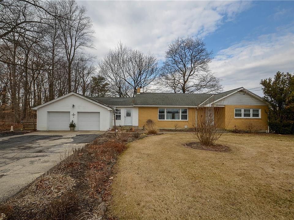 Enjoy breathtaking sunrises and sunsets from your new home! This lovingly maintained 3-bedroom ranch sits on 1.03 scenic acres in the countryside of Bath, PA, within Northampton School District. Offering inviting living spaces and endless potential, this home is perfect for those seeking charm and comfort. Step inside to find an open-concept living and dining area, ideal for entertaining. The kitchen features brand-new vinyl plank flooring and a convenient laundry closet with a hookup for a stackable washer and dryer. Throughout the main level, beautiful hardwood floors extend from the foyer into all three bedrooms, adding warmth and character. A converted breezeway off the 2-car garage now serves as a cozy den, complete with a separate front entry door and sliding doors that lead to a large back deck—perfect for enjoying the expansive backyard. Downstairs, the partially finished basement offers fantastic potential, featuring a wet bar, half bath, and an unfinished section with laundry area including washer and dryer, high ceilings, ideal for storage, a workshop, or future expansion. With its charm, character, and room to grow, this delightful ranch home is ready for its next owner to make it their own! Call today for your private showing! Property is being sold as is.