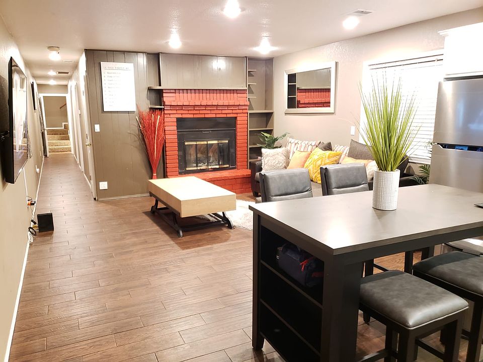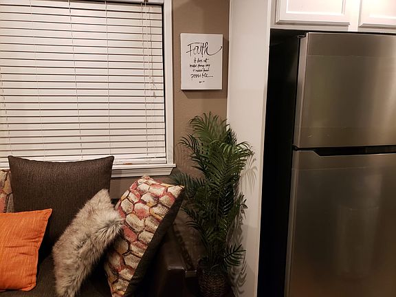 Fully furnished home for rent with 70 inch smart Tv in the living room, 50 inch smart Tv in the master bedroom and 32 inch smart Tv in the auxiliary bedroom. Queen size beds in the master bedroom and auxiliary bedroom, with a double full size bunk bed with a 3rd roll out twin bed in the kids room. Kitchen has dishwater, microwave, gas cooker with oven, and a refrigerator. Washer and dryer installed. 2 car parking in front of home. However, the back yard storage is excluded from the rental.