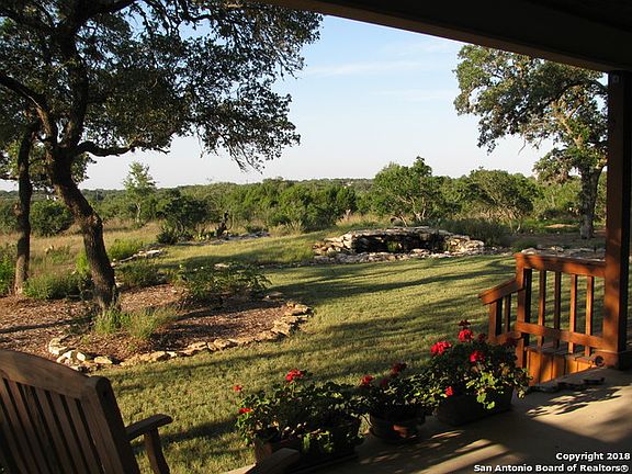 OWN A PIECE OF THE BEAUTIFUL HILL COUNTRY WITH THIS 16.89 ACRE RETREAT! Lush landscape, backyard pond & waterfall & distant views of Canyon Lake! Inside, ceramic tile & wood floors compliment the large office space & dining areas. Open floor plan, breakfast bar, granite counters, 5-burner gas cook top, built-in Kitchennaid refrig, formal dining w/wood ceilings & limestone wall. Huge master w/jacuzzi tub. 2nd floor offers oversized 3rd bedroom w/full bath & separate inside storage. Lg. 3-car w/epoxy floors.