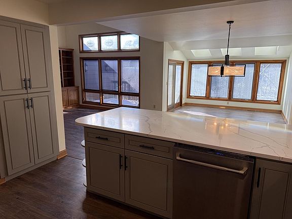 Wow Absolutely Beautiful, Enjoy this renovated open concept unit. Main floor Bedroom with full Bath and private patio area. Gorgeous Kitchen with new cabinetry, Quartz countertops and snack bar to open Dining room, Awesome VEZENI Appliances, Ceramic tile backsplash & pantry. Living Rm with cathedral ceiling, Gas Fireplace with built in cabinetry. Enjoy the west exposed Sun room with 3 skylights, patio door to Deck Open 2-Story Foyer to huge Master Suite w/cathedral ceiling and 3 closets plus 12x11 Sitting area or use as an office area. Master Bath just stunning, double sinks, CT shower stall plus tub & all ceramic tiled walls. The 3rd Bedroom with vaulted ceiling. The 3rd Full bath with ceramic tile & stacked Washer/Dryer closet. New carpet in Bedrooms and upper foyer. New Light Fixtures.