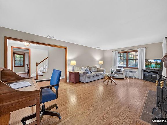 Welcome to this inviting 4-bedroom, 2.5-bath Center Hall Colonial that perfectly blends comfort, warmth, and convenience. The cozy living room with a brick fireplace sets the ideal stage for family gatherings, dinners, and holidays. The updated kitchen opens to a bright three season room that leads out to a spacious deck—perfect for entertaining or relaxing while overlooking the beautiful in-ground heated pool. Upstairs, you'll find four generously sized bedrooms offering plenty of space for everyone. Gleaming hardwood floors run throughout, adding character and timeless appeal. The lower level expands your living space with a comfortable family room featuring a second fireplace, a full bath, and ample storage—ideal for guests, hobbies, or movie nights. The large backyard provides a private oasis for summer fun and outdoor living. Conveniently located close to top-rated schools, town, and shopping, this home offers both tranquility and accessibility—a perfect place to make lasting memories. Taxes for 2025 are $14,669. WANT MORE INFO? CONTACT LISTING AGENT NICOLE MINETTI @ nicole@minettidennisgroup.com//201-388-0077