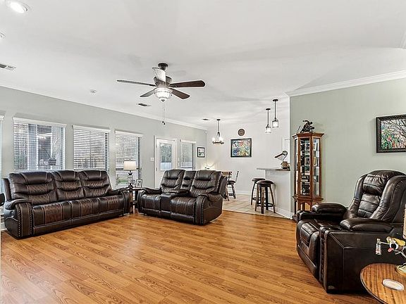 Step into this inviting 3-bedroom, 2-bathroom home, where an open floor plan creates a seamless flow between the living room, kitchen, and breakfast area—perfect for both everyday living and entertaining. Floor-to-ceiling windows flood the space with natural light, highlighting the beauty of this home. No carpet throughout the home. The kitchen boasts ample cabinet space, providing plenty of storage for all your cooking essentials. Spacious bedrooms offer comfort and versatility, while the primary suite is a true retreat, featuring a luxurious en-suite with a his-and-her vanity and a gorgeous walk-in shower. Unwind in the screened-in back patio, where you can relax and take in the views of the meticulously maintained, large, fenced in backyard—a true outdoor oasis. This gem is located within minutes to Hwy 1077. *Seller willing to replace roof with acceptable offer*