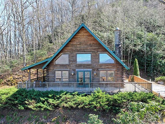 Searching for a log cabin with Privacy and a VIEW? This cabin has easy access to the charms of Dillsboro, the water sports of the Tuckaseegee, and all the fun of Cherokee, Bryson City, Sylva and WCU. Main level has two bedrooms and a bath, an open living area with a large stone fireplace. Wraparound deck and small covered porch. Downstairs the basement hosts a media room and a playroom with a wet bar and a full bath and laundry room. The upstairs loft doubles as a guestroom or office space. Offered mostly furnished. Security system. Privately situated on 12.3 wooded acres. Call for more information or to schedule a showing. No drivebys please.