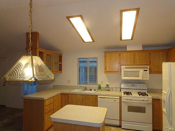 Quiet courtKitchen islandWalk pathVaulted ceilingOpen floor planFlorescent lighting in kitchenMatching kitchen appliances