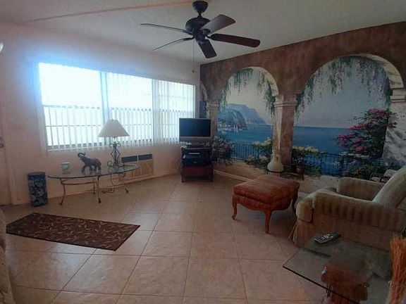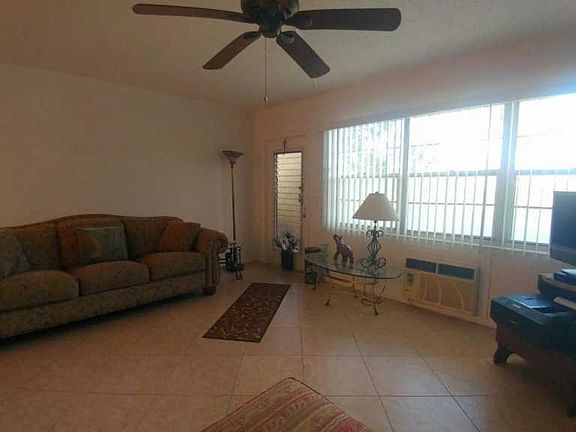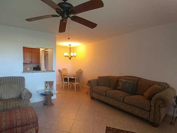 Nicely updated, furnished 1/1 on First Floor in 55+ Century Village Boca Raton. All tiled on the diagonal, Granite kitchen and Bathroom. New range. A/C and other appliances updated 3 years ago. Screened patio with storage area. Move right in. Cash only.