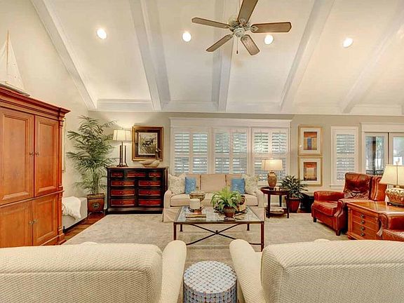 This beautiful home is located in gated Hampton Plantation, home of the King and Prince Golf Course, on a .43 acre large treed lot overlooking the 2nd fairway with room for a pool. Custom built in 2016, this beautifully maintained home has an open floor plan with a 16' beamed ceiling in the great room and dining room. There are 4 bedrooms, 3.5 baths, including a Jack and Jill bath between two of the rooms with double vanities for each room, and laundry room all on the main level. This home includes a bonus room above the garage with walk-in attic storage as well as a large storage closet. Plantation shutters, two water heaters with timers, a 2 car oversized garage, deep well for irrigation, circular driveway, zone heating/AC also makes this home a must see.