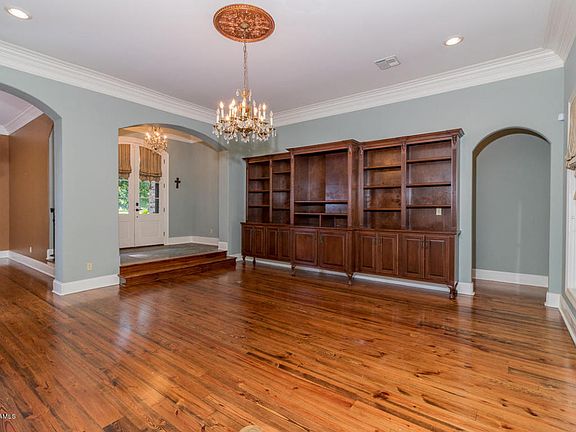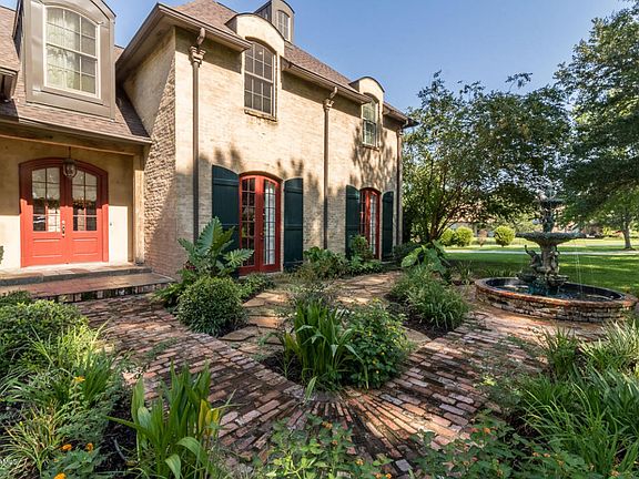 Welcome to 175 Ridge Crest Drive! This French inspired home on a private cul-de-sac road is situated on almost two acres of beautiful scenery and professional landscaping. Turn down a winding driveway and you'll be greeted by a stunning fountain and a brick path that will lead you to your very own private courtyard. Upon entering the home, you'll fall in love with real long leaf pine wood flooring and slate throughout the downstairs kitchen and dining areas. Soaring ceilings, crown molding and grand chandeliers highlight the elegance of this home. Step into the kitchen where you'll find custom stained wood cabinets, exotic granite countertops, and all stainless-steel appliances including the refrigerator which will remain. The space offers vaulted wood ceilings, a gorgeous cypress beam, a gas burning fireplace enclosed by a hand carved mantle and courtyard views. Separating the kitchen and formal dining room is a butler's pantry for added storage for your fine china, crystal and table linens. There is also a convenient full bath off the kitchen area and an additional bedroom. Downstairs also showcases the master suite with its own private bathroom, a custom tiled shower, garden tub and master closet to swoon over featuring his and her own private areas with convenient built ins. As you head upstairs, you'll find two additional bedrooms- one of which has its own private bath, a hall bathroom and a large sitting area complete with built in desks that would be ideal for children's homework with ethernet cables on each or it could be used as an additional space for all your work at home needs. There is also easy access to the spray foamed attic for storage needs. As a bonus, this home features an air-conditioned mother in law suite with washer/dryer hookups which is not included in the sq. footage of the home. This could be used as an additional bedroom, workout room, separate office or man cave. The garage also features an air-conditioned workshop room. The back patio amenities include a fireplace, built in grill, mini fridge and a sink. This home sits high and dry, has never flooded and is not located in a flood zone. Call for your private viewing today!