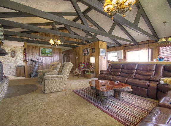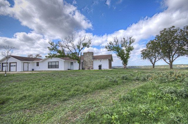 This home boast one of the most magnificent, panoramic views in the Hill Country! This large 3 bedroom 2 bath home has an attached 1 bedroom guest house. The main house boast large ceiling height windows that display the view! In addition, you will find high ceilings and a split bedroom floorplan. This hilltop home sits on 8 acres and includes a grand rock fireplace.