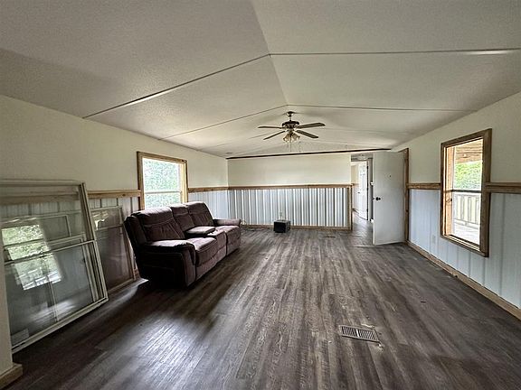 Perfect Getaway! 3 Water Front River Lots! Includes a 16x80 Mobile Home with 2BR/2BA, Central Heat & Air, 9x90 Wrap Around Deck & Concrete Patio Area Under Mobile Home. 3 Concrete Pads For Your RV. Cook House, Great For Cookouts! Steps Leading Down To The River.