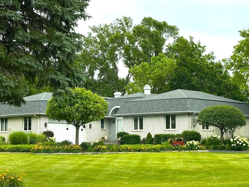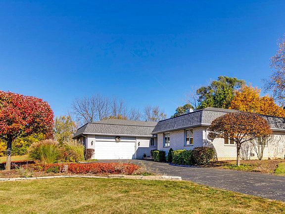 Gorgeous Ranch Home in a Tranquil Setting! Discover the perfect blend of elegance and comfort just minutes from The Arboretum and Woodfield! This stunning 3 Bedroom and 3 Bathroom Ranch features beautiful wood flooring throughout and impressive 11-foot ceilings adorned with crown molding in the living room, complemented by a full wall of windows that offers breathtaking views. The kitchen is a chef's dream, showcasing 42" custom cherry cabinets, granite countertops, and an open layout that flows seamlessly into the family and dining room, complete with a cozy fireplace and wet bar-ideal for entertaining guests. Retreat to the master suite, which boasts a spacious walk-in closet and a beautiful bath featuring an oversized shower with custom tile work. Set on a professionally landscaped 1+ acre lot, the outdoor space includes a generous paver patio with a seating ledge and a sprinkler system, perfect for enjoying the serene surroundings. New roof done in 2023. Additional features include a basement and an oversized, insulated two-car garage with an epoxy floor and ample storage. This home is truly move-in ready-don't miss your chance!