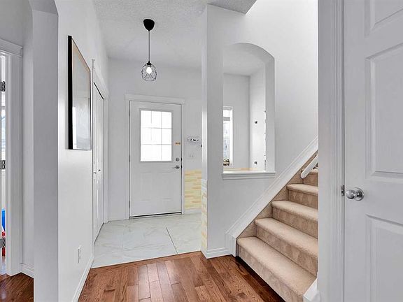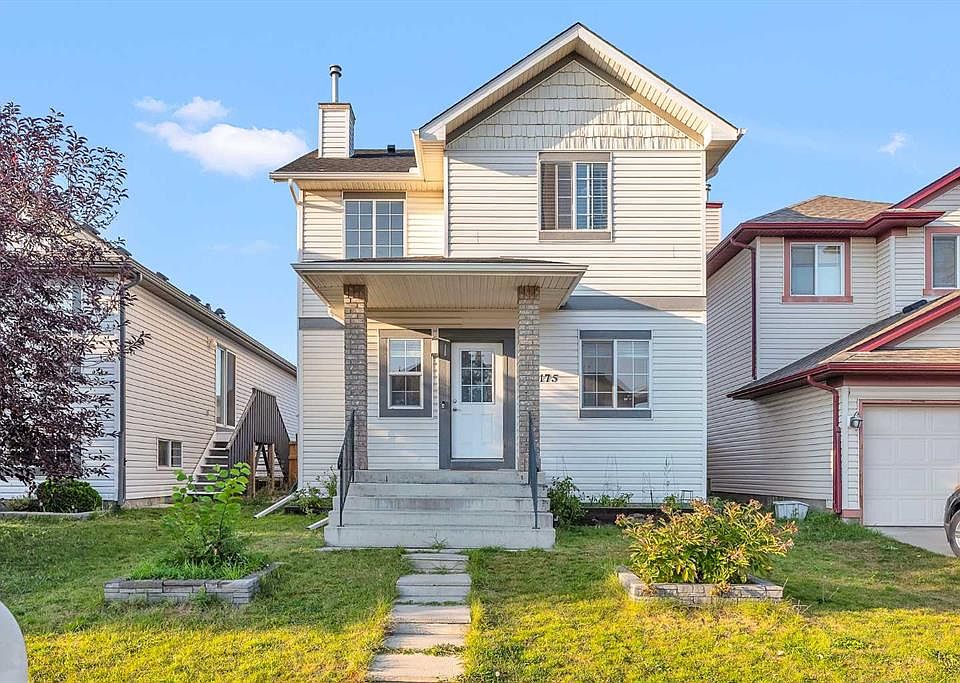 Discover this affordable 2-storey detached home in the desirable community of Evanston, offering over 2110 sq.ft of living space with 3 bedrooms, 3.5 bathrooms, and a thoughtful layout designed for modern family living. The main floor welcomes you with 9-ft ceilings, as the large foyer leads to a bright and open-concept living room centred around a cozy gas fireplace. The spacious kitchen features a corner pantry, SS appliances, a centre island with raised eating bar, and a dining area with double patio doors. Those doors lead to the deck and huge backyard with storage shed and plenty of room for a double detached garage. A laundry room and 2-pc bath complete this level. Upstairs, the serene primary suite offers a walk-in closet and private 4pc ensuite, while two additional bedrooms are generously sized and filled with natural light, sharing a 4pc bath. The fully finished basement expands your living space with a large recreation room, a den with a built-in office, and a 3pc bath — perfect for movie nights, a playroom or a home gym. Outside, the oversized backyard is fully fenced and landscaped, offering space for play, gardening and entertaining. Situated in a family-friendly community close to schools, grocery stores, cafes and shops, with easy access to Stoney Trail and major routes for a smooth commute. Call to book your private viewings today!