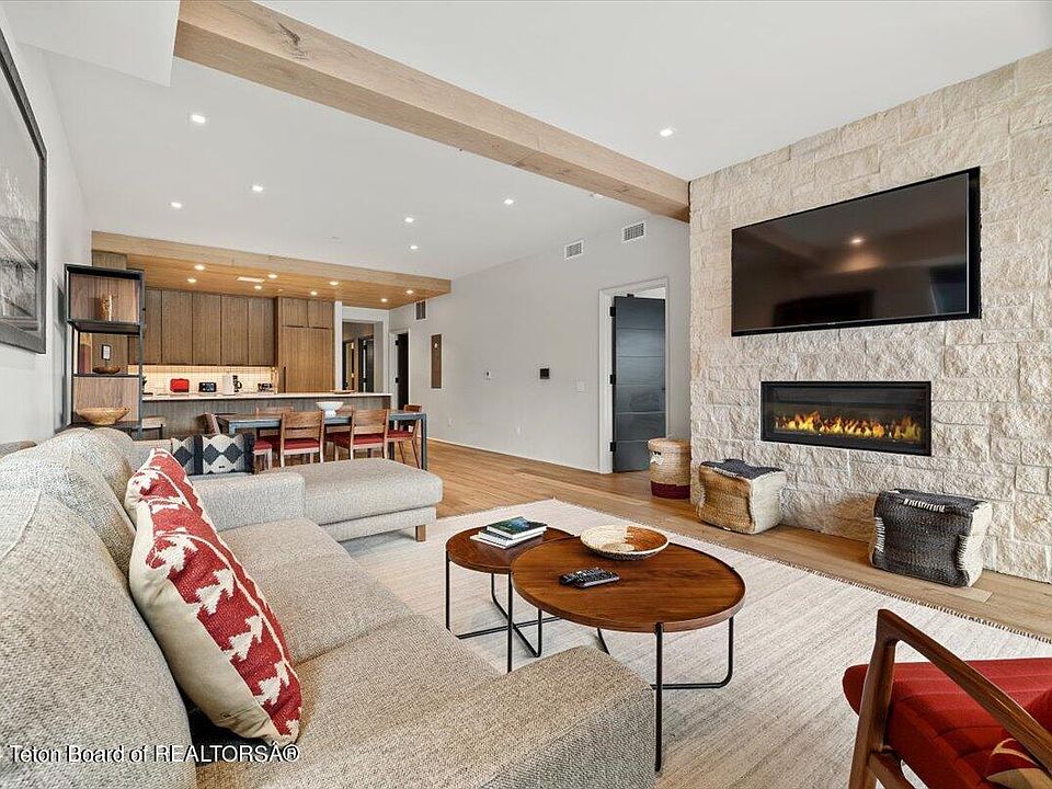 Enjoy the Jackson Hole lifestyle in this luxurious state-of-the-art 2 bed/2 bath condominium in the heart of downtown. Located in the new Arts District West building, this fully furnished, turn-key unit was thoughtfully designed for efficient day-to-day living, with the added flexibility to rent nightly in the luxury short term rental market. The condo offers spacious living areas, NanaWall window system that fully opens to a large covered deck with built in grill, seating area, hot tub & views of Snow King Mountain. Other features include Wolf & Sub-Zero appliances, Waterworks fixtures, hardwood floors, custom stone & tile finishes, owner storage, key fob access for private entry, video door telephone, fiber optic internet, 2 designated underground parking spots and additional storage.