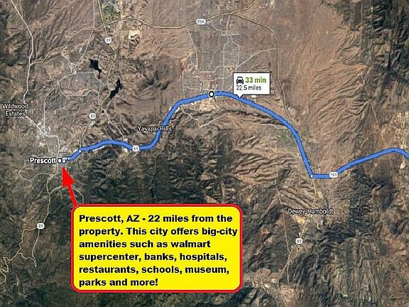 2.7 Acres in beautiful Dewey, AZ. Amazing 360 degree views with loads of potential. Easy access to 169 for a quick trip to Phoenix or Flagstaff. Prime location for commuters, bring your clients to see this great property!