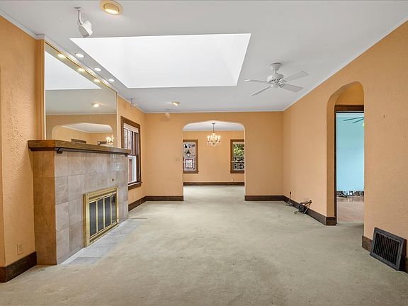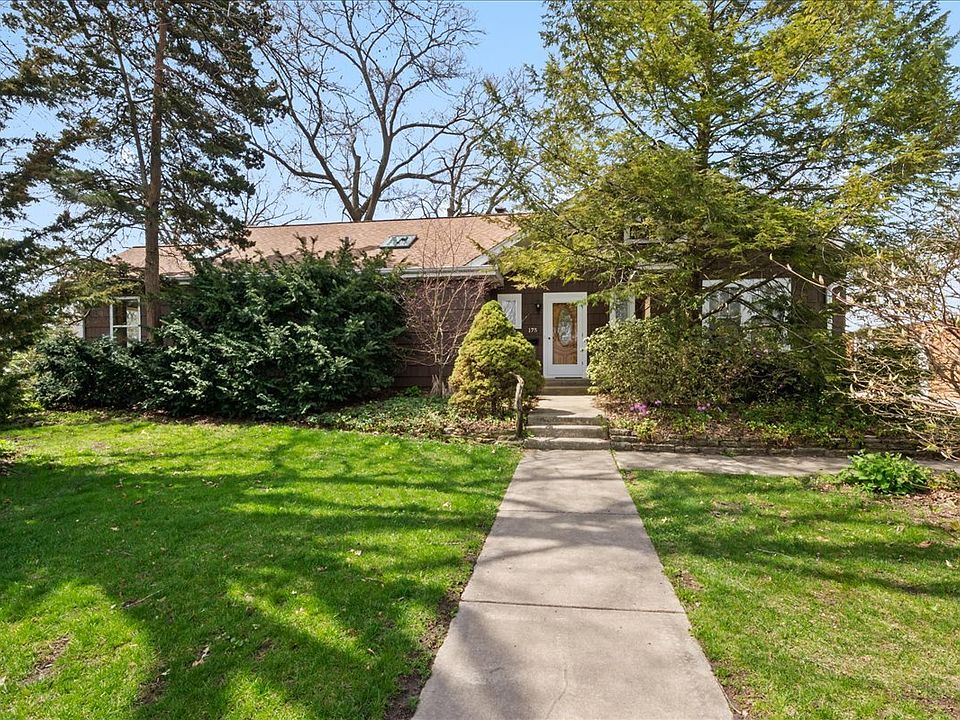 Absolutely amazing westside ranch situated on 3 lots! You will definitely appreciate the original moldings, arched doorways, and beautiful wood doors! This rambling ranch has a spacious floor plan with big living room offering 3 arched doorways, fireplace, and skylight! The vintage kitchen has St. Charles cabinetry, solid surface countertops, SS oven/range, refrigerator, and big step-in pantry closet. Warm and inviting dining room with atrium door to the beautifully landscaped patio & yard. Primary bedroom has a vaulted ceiling with skylight, adjacent to the sunroom with panoramic views, and a full bath with dual sink vanity, vaulted ceiling with skylight, big soaker tub, and walk-in steam shower with glass doors. You will fall in love with the sunroom and the gorgeous views of the yard it has to offer! Two secondary bedrooms with generous closet space and ceiling fan/lights. Updated full hall bath with handicap accessible shower. Big hall closet with access to area for spiral staircase (not currently set-up or used). Full basement with large family room, work room, third bathroom, and abundant storage. Four plus car garages with attached storage space. This central location is minutes from Aurora University, downtown Aurora, and I-88 access! This unique and well-preserved property has endless possibilities, come take a look and you'll be hooked!