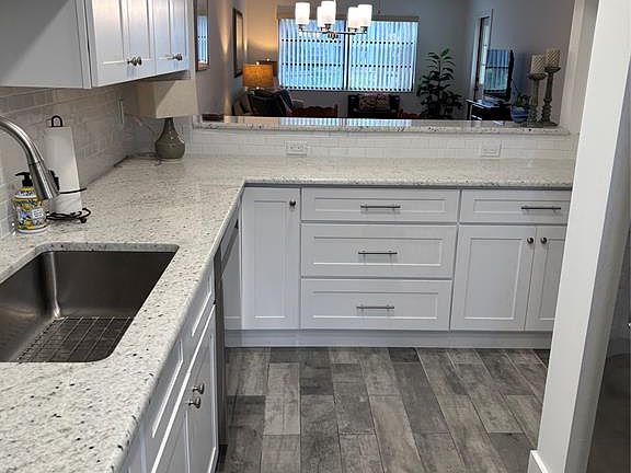 Newly renovated and extra large 1 bedroom and 1 and 1/2 baths. Fully furnished and move in ready. New king size bed in primary bedroom and new convertible sofa in living room. New kitchen cabinets, countertops and appliances. New Windows being installed currently. Tile floors throughout. Private patio with water views on the pond with water feature that lights up at night. 2 pools, Club house, BBQ, Dock, River front community. Centrally located near shopping, beaches, bridges, restaurants and more. Over 55 community, no pets or motorcycles. Trucks allowed! Must see!