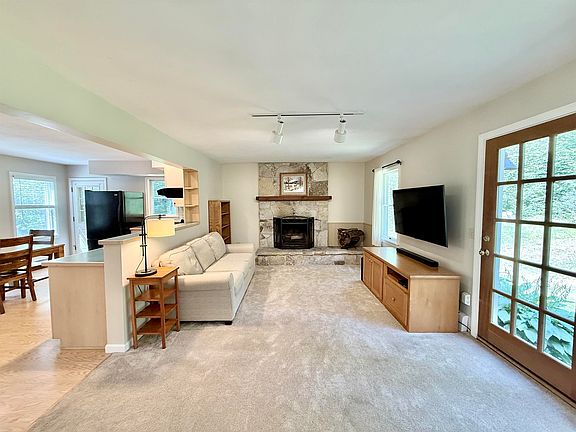 Nestled in the scenic beauty of Londonderry, Vermont, this delightful 3-bedroom, 2-bathroom home offers the perfect blend of comfort, convenience, and outdoor charm. With a thoughtfully designed layout that includes a bedroom and full bath on the main floor, this home is ideal for aging in place or accommodating guests. The heart of the home boasts an open living, dining, and kitchen area, perfect for entertaining or relaxing by the wood-burning fireplace. Windows and doors to the outside let in plenty of natural light and offer views of the lush garden surroundings. Enjoy winter nights in front of the inviting stone fireplace, creating a warm and welcoming atmosphere for family gatherings or quiet evenings. The second floor features two large bedrooms and a full bathroom. A spacious detached garage offers ample room for vehicles, storage, or a workshop, making it ideal for hobbyists or those needing extra space. There is excellent potential for year-round living or a vacation getaway. Additionally, it is 5 miles to Bromley, 14 miles to Stratton, and provides easy access to local amenities and recreational opportunities such as Wild Wings Nordic Center and Viking Nordic Center.