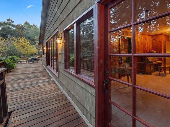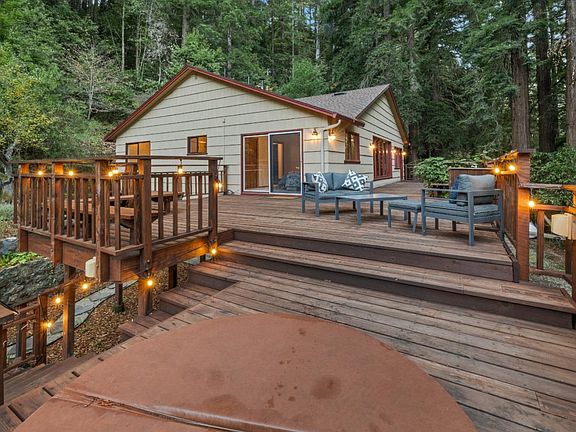 Updated Price! Come see this one before it gets away! Welcome to this breathtaking, secluded country gem on Stirling Way! Your own 5 stunning acres, just minutes away from the charming town of Ben Lomond! This 4 bedroom, 2 bath home is surrounded by lush greenery. Two of the bedrooms offer private entrances, making them perfect for a creative studio or your very own workout haven! Step into the music room, then cozy up with a hot beverage in the living room, featuring soaring cathedral ceilings, warm pine wood walls, and a stone fireplace that exudes relaxation. Large windows with breathtaking views of the surrounding redwoods bring the beauty of nature right inside. Garden lovers will be in awe of the terraced yard, with vibrant flowers that bloom each spring, truly a gardener's paradise! There are expansive decks featuring a hot tub, bbq area and enough seating to accommodate large get togethers. Plus, enjoy a garage with an added bonus room and a spacious workshop, a mechanics dream come true! Perfect for remote work with Xfinity Wi-Fi and easy access to commuter routes. The home has refinished hardwood floors, new carpet, and updated appliances making it move-in ready for your next exciting chapter! Includes 2 parcels 076-211-08 and 076-211-09.