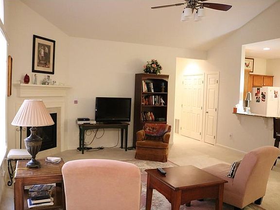 Full of upgrades, this condo is sure to impress! Located on the back side - private and quiet outdoor space is ready to be enjoyed. Inside the foyer opens to an open concept living space with living, dining and kitchen together with vaulted ceilings. Lovely gas fireplace for cozy atmosphere - granite countertops complete the custom kitchen with an oversized walk-in pantry and newer appliances. This unit boasts a den/bedroom that has sliding doors out to a private patio on one end of the unit with two more bedrooms. Large bathrooms with a full separate laundry room complete the space. Two car attached garage. Secure, gated community with a private clubhouse.