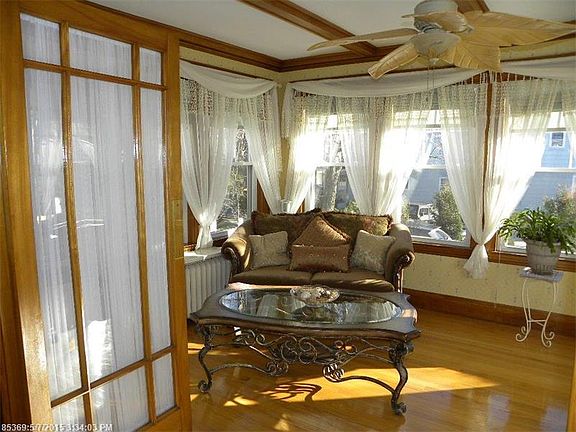 Traditional New Englander w/today's amenities. Over 2300' of living space in this 10 room home. Tastefully renovated, gorgeous woodwork & hardwood flrs, formal diningrm & livingrm w/brick fireplace, charming 4 season sunrm, laundry rm/pantry on 1st floor. Lrg rooms thru-out, 2nd flr balcony, built-ins & very efficient to heat. Great for entertaining, huge deck overlooking double lot beautifully landscaped w/stone walls, fenced in backyard w/log cabin playhouse for the kids, All this sits centrally located.