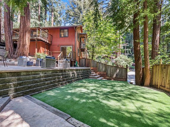 Nestled amidst the serene beauty of the redwoods with an open floor plan & natural light pouring in throughout, this spectacular 3 bed/2 bath mountain home truly feels like you're living in paradise. Modern kitchen features stainless steel appliances, quartz countertops, loads of cabinet space & a breakfast peninsula. The top floor bedroom boasts thoughtful storage solutions & can make a great office, secluded from the other bedrooms which are downstairs. Only 34 years young & recently updated, this home has everything one could want, including a low maintenance turf yard, separate fenced in area for your furry four legged friends or to keep the deer out of your prized garden, which yes, already has irrigation hooked up & ready to go. Imagine spending your warm summer evenings under the canopy of the redwoods while enjoying a glass of wine & watching the stars come out. You can hear the wind coming off of the wings of the crows as they fly overhead. Ample parking is available thanks to the 2 separate driveways & detached garage, which can double as a workshop for hobbyists or an art studio for the creatively inclined. It is located just 10 minutes from downtown Boulder Creek, a quick jaunt to Big Basin & Castle Rock State Parks, & the heart of Silicon Valley just over the hill.