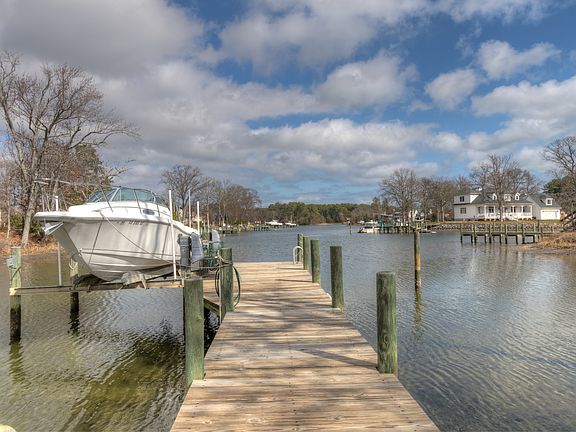 This waterfront home has everything you have been looking for to live the Rivah dream. Featuring beautiful water views and lots of outdoor space, open floor plan, wood floors, first floor master bedroom, tons of bonus space for guests or rec. rooms, garage for storage, dock with boat lift and close to amenities. This property is priced to SELL and is listed far under the assessed value. The Kitchen offers granite counters and beautiful cabinets with water views. The first level offers master bedroom en suite, great room with stone fireplace, breakfast nook, dining area, wet bar and laundry. The second level offers a family room with gas fireplace and water views, 2 guest bedrooms and another large entertainment room that can be used as a 4th bedroom. There is a water side screened porch and 2 levels of waterside decks. The pier sits on protected Tabbs Creek with great access to The Chesapeake Bay. The pier features a boat lift and water with 3-4 feet MLW. Sellers are motivated and ready to help your waterfront dream come true.
