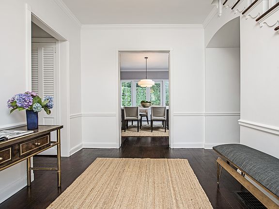 A classically beautiful colonial with an expansive front veranda, perfectly sited on the property and ideally located near shops, restaurants and schools. The elegant entrance hall provides immediate views of the sun-filled dining room, featuring double glass doors to the flat, private backyard. A large eat-in kitchen interacts with the dining room as well as the adjoining front den. The living room, the centerpiece of the home, is truly the great room, extraordinary in detail and striking in proportions and scale. Triple exposures, a fireplace, and access to the front veranda make it inviting and irresistible. The second floor features a stunning master bedroom with a master bath, along with three additional bedrooms. A lower level provides a laundry room, utilities and a windowed additional 304 SF paneled room with original fireplace. Rendered in cool tones (freshly painted) and a crisp aesthetic, this house achieves a wonderful blend-abundant character viewed through a modern lens.