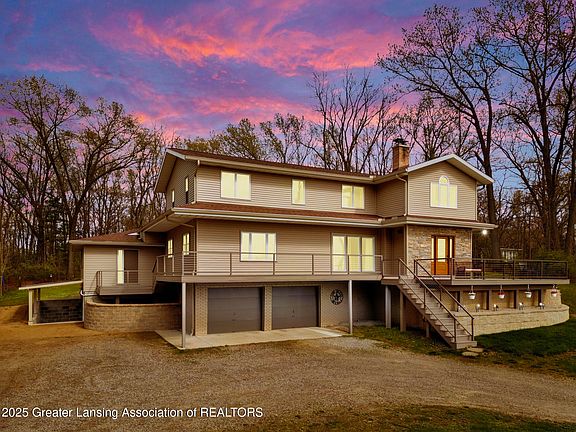 Motivated Seller! Beautifully updated home with lake access to Half Moon Chain of Lakes. The home has had massive updates costing upwards of $150,000! The home features large bedrooms, an attached guest house, beautiful hickory kitchen, granite countertops, a shared dock on Woodburn Lake, a pool and a huge three season room with new windows. The main house has a first-floor bedroom and bathroom, an office area and formal dining room. Upstairs are the large bedrooms and primary bedroom with large walk in closet with en suite. The attached guest house has been updated with vaulted ceiling beams, wood floors, a beautifully tiled tub surround and a kitchenette and family room on the lower level. The guest house has separate access and could be used for family or additional income.