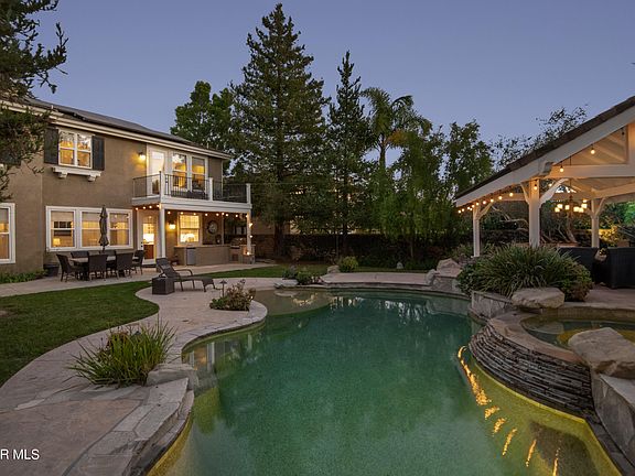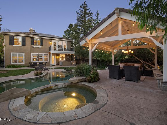 Welcome to your forever home! This is truly the one you've been waiting for. Nestled in the sought-after Dos Vientos Ranch, this gorgeous home boasts stunning views of Boney Mountain and an entertainer's dream yard. Imagine lounging by the pebble-tech pool and spa, grilling at the BBQ island, or enjoying cozy evenings by the cabana fireplace. The recently remodeled white gourmet kitchen is a chef's delight, featuring stainless steel appliances, including a Thermador 6-burner stove with griddle, a large center island, Quartz countertops, and a subway-tiled backsplash. The downstairs is beautifully accented with warm, rich hardwood flooring and crown moldings. The formal living room offers a custom white mantled fireplace, while the family room features elegant custom built-ins. Upstairs, the primary suite includes a charming balcony overlooking the lush, green backyard and a versatile retreat perfect for an office or workout space. Additionally, there is a loft at the top of the stairs, ideal for a kids' play area or gaming space. This home has everything you need and more. No need to move again—your forever home awaits!