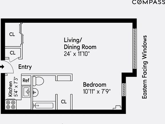 Windows face eastTons of natural lightStainless steel appliancesOversized renovated alcove studioSpacious closetsAmple closet spaceSeparate kitchen