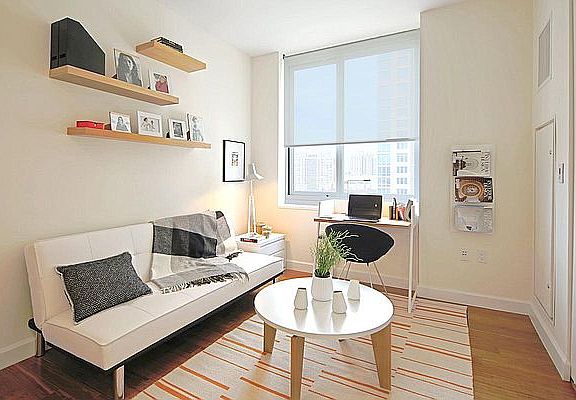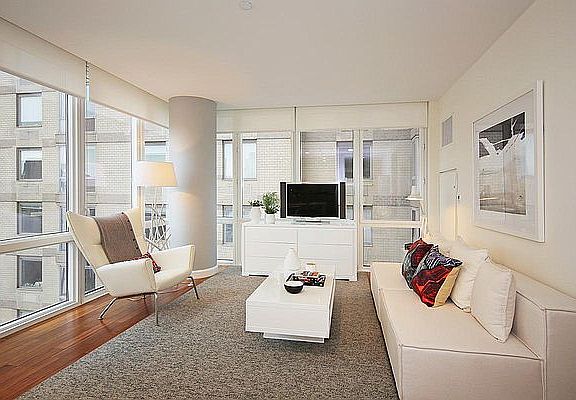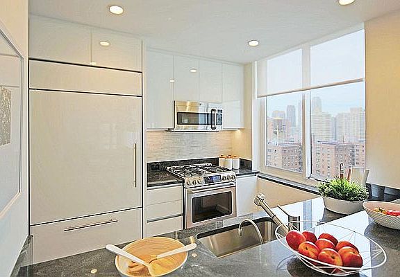 Lives like a two bedroom, queen size windowed home office, open windowed kitchen, custom white glass cabinetry, natural granite counters, floor-to-ceiling living room windows, king size master with private bathroom, bamboo plank floors, rent stabilized lease, full size washer and vented dryer, rooftop pool and furnished sundeck, lounge with kitchen, fitness center, pet friendly See Website for FHA Compliance Info