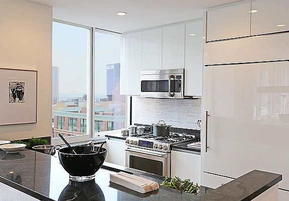Steps to Central Park, corner home with beautiful open windowed kitchen, natural granite counters with marble back splash, GE appliances, double oven with convection, filtered water system, full size washer and vented dryer, bamboo plank floors, rent stabilized, fitness center, lounge with kitchen and fire place, playroom, pet friendly. See Website for FHA Compliance Info