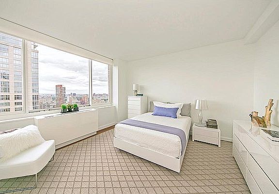 Stunning corner view, floor-to-ceiling windows, open kitchen with natural granite counters and marble backslash, GE series appliances, white glass Scavolini custom cabinets, king size bedroom, full size washer and vented dryer, roof top pool with furnished outdoor terrace, lounge with kitchen, fitness center all private for tenants, pet friendly, rent stabilized See Website for FHA Compliance Info