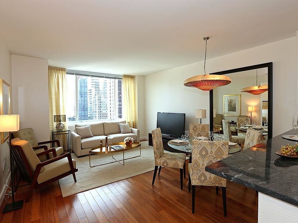 Lovely sunset view, open kitchen floor plan with large natural stone counters, queen size bedroom, bamboo plank floors, high ceilings, enhanced building wide cleaning, filtered water system, lounge with kitchen, roof top pool and furnished deck, fitness center, gross rent $5150, Covid 19 rent relief price shown for new tenants See Website for FHA Compliance Info
