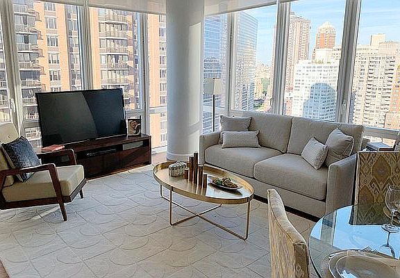 Amazing corner view, floor-to-ceiling windows, open custom windowed kitchen with natural granite breakfast bar and custom glass front cabinetry, GE series stainless appliances, living room with dining area, king size bedroom, windowed large marble bathroom, full size washer and vented dryer, bamboo plank floors, building wide filtered water system, rooftop pool and furnished deck, fitness center, lounge with kitchen, pet friendly, steps to Central Park. See Website for FHA Compliance Info