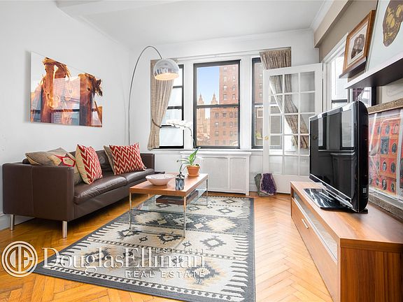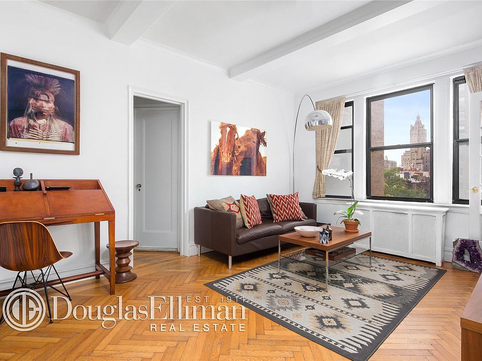 Representing elegant, pre-war living, this apartment is situated perfectly in the coveted corridor of the Upper West Side. This high floor home has open Eastern views, showcasing rare tree top views and the dramatic skyline of the historic San Remo towers. Gleaming Herringbone floors complement this classic and sophisticated one bedroom. Offering 10 foot ceilings, this impeccable layout offers qualities rarely seen in standard one bedroom homes. The separated entry gallery leads into the main living room, which is next to an extremely functional kitchen with modern touches and a well thought out design. The windowed bathroom offers the original cast-iron tub and oversized pedestal sink with basket weave tile, and all is complemented by immaculate grouting and well-appointed finishes. Through wall air-conditioning is permitted. This home is perfect as a primary residence, or as a pied-a-terre for weekend escapes with the city at your disposal. The Verdi is a full-service pre-war co-operative with a 24-hour doorman, resident superintendent, laundry room, roof deck with amazing city views, storage lockers (wait list), and bicycle storage (wait list). This location is as prime as it gets, with Verdi Square and the 72nd Street subway station across the street providing convenient access to the 1, 2 and 3 subway lines, and Central Park and Riverside Park both just a few blocks away. This home is not only near the best dining and shopping on the upper west side, but steps to Equinox, Soul Cycle, the Beacon Theater, Lincoln Center, Fairway Market, Trader Joe's, and a City bike rack right across the street. Pied-a-terres and guarantors are permitted, but sorry, no dogs.