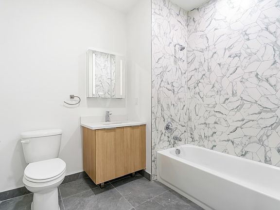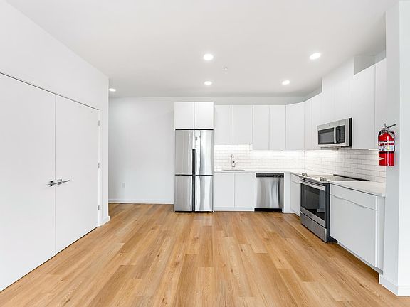 Welcome to The Pointe Bayonne, This boutique set of residences offers stunning views overlooking the iconic Bayonne Bridge. With 56 one and two bedroom units, each home is designed with a sleek and tasteful aesthetic, creating a seamless flow from the beautiful kitchen to the spa-style bathrooms. Step into the kitchen and be greeted by timeless white quartz countertops, stainless steel appliances including a quad door refrigerator, and abundant cabinetry for all your storage needs. For added convenience, every home includes a private washer & dryer, making laundry day a breeze. Some select homes even offer private outdoor space, perfect for enjoying the fresh air and taking in the breathtaking views. The amenities at The Pointe Bayonne are designed to elevate your lifestyle. Stay active in the fitness studio, host a productive meeting in the co-work space, or indulge in some friendly competition in the game room. When it's time to unwind, the resident lounge and courtyard provide the perfect setting for relaxation and socializing. Conveniently located in a vibrant and growing community, The Pointe Bayonne offers the perfect blend of luxury living and modern convenience. Don't miss the opportunity to experience the luxe lifestyle that awaits you at The Pointe Bayonne. Pictures are of a similar unit.
