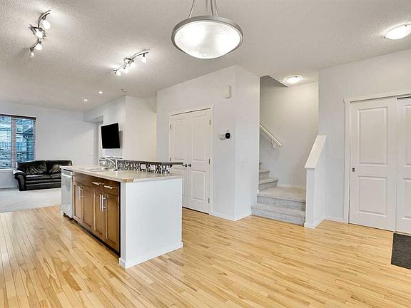 Welcome to 175 Chapalina Square SE Calgary, a sunny bright 2-story townhome built in 2007 situated in the vibrant lake community of Chaparral. This recently upgraded home combines modern design, hardwood floors and carpet, and a smart flexible layout. The main level offers open living/dining, gas fireplace, 2-piece guest bath, gourmet kitchen with stainless steel appliances, and ample counter space. Upstairs includes a master bedroom with 3-piece ensuite, and 2 more roomy bedrooms and full bath. Additional amenities include air conditioning, full basement ready to be developed, single garage, plenty of storage and off-street parking, close proximity to shopping, restaurants, schools, public transportation. This home is immaculate and move-in ready.