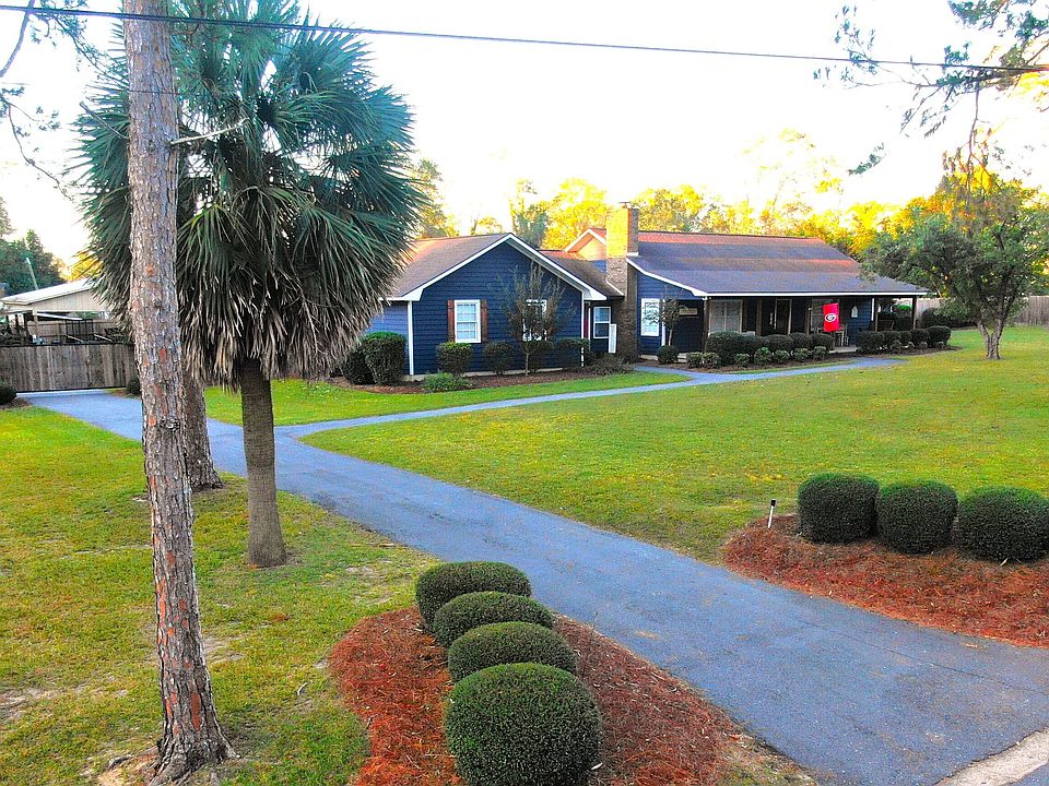 This beautiful home, situated on a coveted corner lot, offers a blend of elegance and comfort. Enter through a solar remote-controlled gate to access the fenced backyard, featuring a 2-car carport and additional 2 car carport attached. There is also abundant attic storage space. Enjoy your own private oasis with a well-landscaped in-ground pool and a new fence enclosing the backyard. The spacious back porch is perfect for relaxing, while the welcoming front porch adds to the home's charm. Inside, a large living room with a cozy fireplace opens seamlessly into the dining room, creating an inviting space for gatherings. The newly remodeled kitchen has tile backsplash and butcher block countertops while the dining room has shiplap walls and sliding barn door! A mud room connects the backyard to the home for easy access after enjoying outdoor activities. With three generously-sized bedrooms and two baths, there's room for everyone. Additionally, a den/sunroom offers a flexible space that opens to the garage, and the garage itself includes a office-ideal for working from home. This home combines luxury, functionality, and outdoor living in one package-don't miss this opportunity!