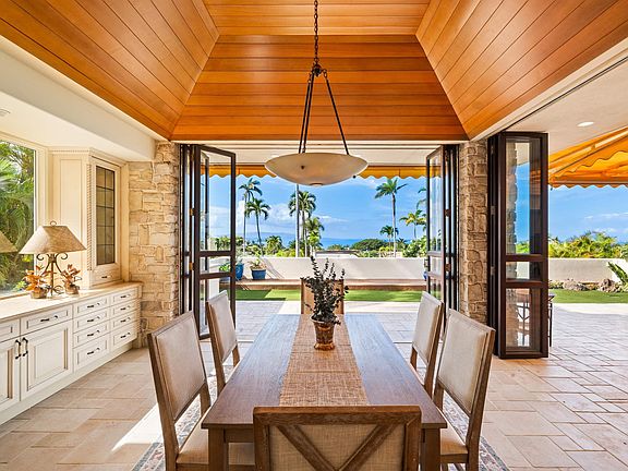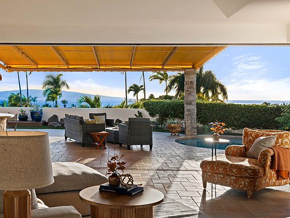 Perched quietly above a cul de sac in Wailea’s esteemed Kialoa community, 175 W Ikea Moku feels less like a residence and more like a private sanctuary. The home opens to a sweeping panorama of the Pacific and neighboring islands and was thoughtfully designed around key principles of privacy, uninterrupted views, and seamless indoor and outdoor living. Natural light fills the interior, and sliding doors fully retract, removing any barrier between your living space and the Maui outdoors. The open living areas flow directly to the expansive lanai, outdoor bar, pool, and spa, ideal for entertaining or peaceful enjoyment of your surroundings. The primary bedroom is a standout with ocean view and the pool just steps from your door, creating an effortless connection between indoor comfort and outdoor relaxation. The suite includes split air conditioning, a fireplace for ambiance, an oversized walk in closet, and a spa inspired bathroom with both indoor and outdoor showers. In 2025, the home was refreshed with new kitchen appliances, updated lanai landscaping, and interior paint. Two spacious office areas offer peaceful ocean and garden backdrops, while a private guest bedroom and bathroom ensure comfort for visitors. An elevator provides direct access from the two-car garage to the main living level for added ease. A Lutron HomeWorks system provides simple and smart lighting control throughout the home. With 27 solar panels supporting the home and mature landscaping surrounding the property, this residence is intentionally positioned for privacy from every angle. It offers a rare combination of refined design, peaceful living, and an effortless connection to Maui’s natural beauty.