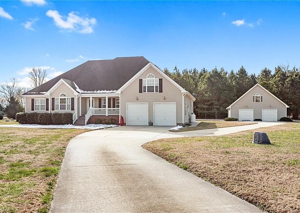 This 4 BR 2 ½ bath custom built ranch on over 3 acres is one of the nicest properties in this entire area! Many extras including downstairs primary bedroom suite, oversized 550 sq. ft Att/Gar & additional 32’ X 36’ detached garage/shop with second level “shop area”, like new heat pumps, deep well, huge FROG with attic access, HW floors, ceramic tile bathrooms, and more! Enjoy watching wildlife from your private screened porch overlooking an acre of 15 yr old loblolly pines! Possession approx. May 1st as Seller building new home. Call today to see this lovely home!