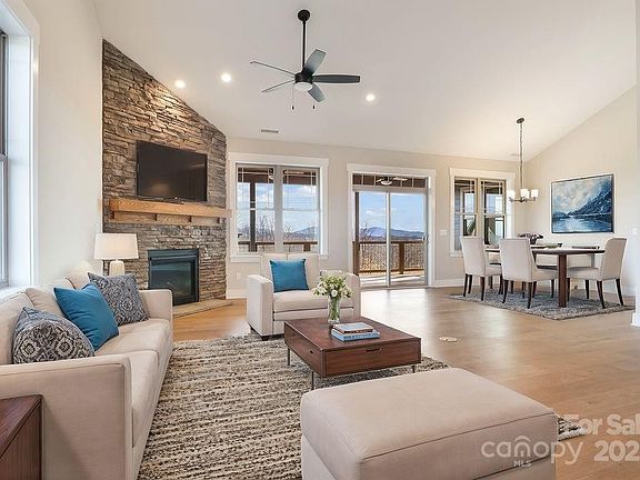 MOVE-IN READY – New construction in a gated mountain community near Biltmore Park! This 4-bedroom, 3-bath Craftsman-style home offers main-level living with vaulted and tray ceilings, an open floor plan, hardwood floors, and a spacious great room with gas fireplace. The kitchen includes quartz countertops, a large island, and upgraded finishes. The main level also features the owner’s suite with mountain views, guest bedroom and full bath, laundry room, and 2-car garage. The light-filled walk-out lower level adds a large rec room, two bedrooms, and full bath—ideal for guests, hobbies, or home office. Enjoy year-round views from the expansive wrap-around deck or relax on the patio below. Built for efficiency with a tankless water heater and multi-zoned HVAC. No yard work—HOA handles it! Community amenities include a clubhouse, pool, fitness center, walking trails, and planned fire ring seating area. Seller offering $2,500 toward buyer’s closing costs! City utilities, low county taxes!