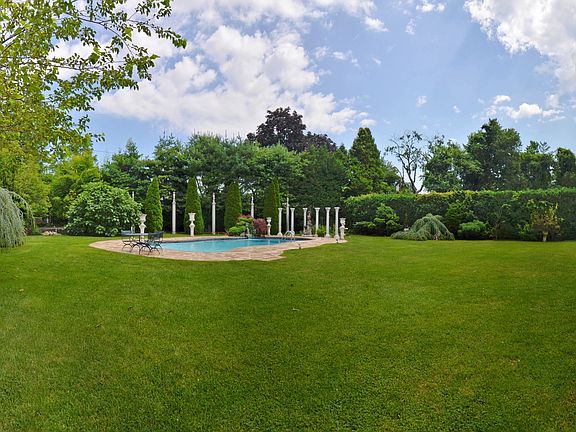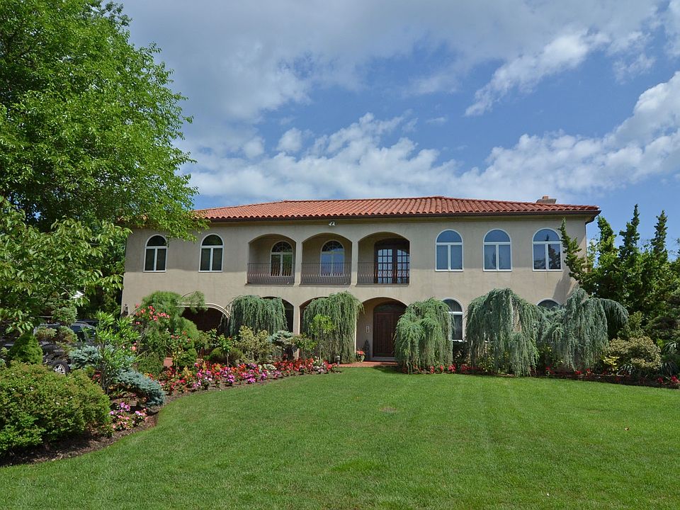 STUNNING MEDITERRANEAN VILLA WITH GLORIOUS GROUNDS!Make an appointment today to view this stylish and sophisticated 6 bedroom, 5.5 bath Mediterranean Villa set in prime Flower Hill neighborhood in Manhasset. Stunning architectural highlights include soaring 10' ceilings, 9' solid oak doors, beautiful fan-light Andersen windows w/eye-catching stained glass insets, grandmarble staircase, terracotta balcony, and huge finished lower level.Spectacular half-acre, park-like grounds feature a glorious free-style gunite pool and 2 handsome Kentuckyorchard stone patio areas for entertaining family and friends. The yard also offers a peaceful water garden/koi pond, in-ground sprinklers, extensive outdoor lighting, and lush specimen plantings & trees.
