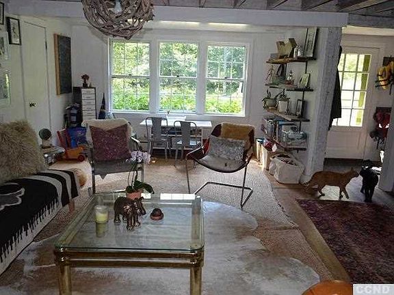 Darling country farmhouse is reminiscent of the English countryside, on 10 acres with gardens, and open areas suitable for small scale agriculture. The perfect location, only 2 miles from the charming village of Chatham, but still rural in feel and setting, and set nicely back from the quiet road. Open concept kitchen, living room and dining room with first floor guest room and bath, mudroom, laundry room and office with bath. Upstairs are three charming bedrooms tucked under the eaves with two baths. The icing on this perfect package is a post and beam 2200 square foot studio building with radiant heat, balcony style second floor large enough for two sleeping areas, water and easy ability to add septic.