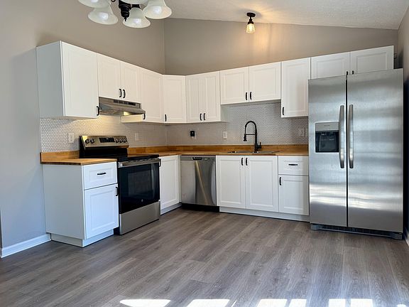 You'll love this remodeled 3 bedroom 2 bath split bedroom design ranch! New flooring and paint throughout, new kitchen cabinets, countertops and appliances.New bath vanities and countertops, new gas HVAC system. Other amenities include vaulted ceilings in the living room and kitchen, fenced in back yard, deck and covered front porch.